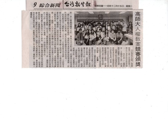 台灣新生報:高師大人權教案競賽頒獎【報紙版如附檔】