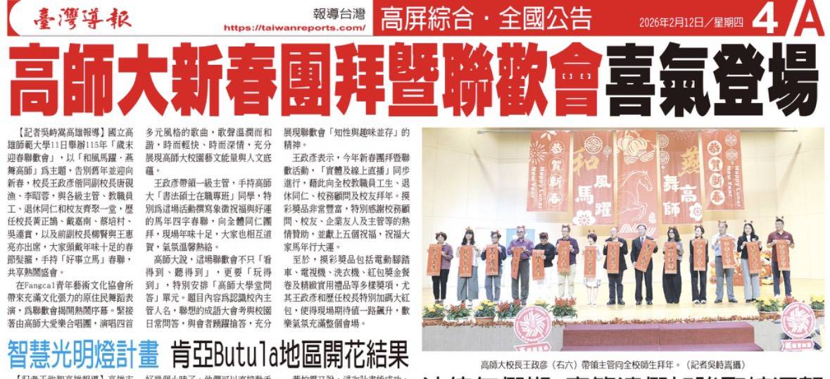 國際寰宇時報:高師大新春團拜暨聯歡會喜氣登場 活動精彩摸彩更是驚喜連連