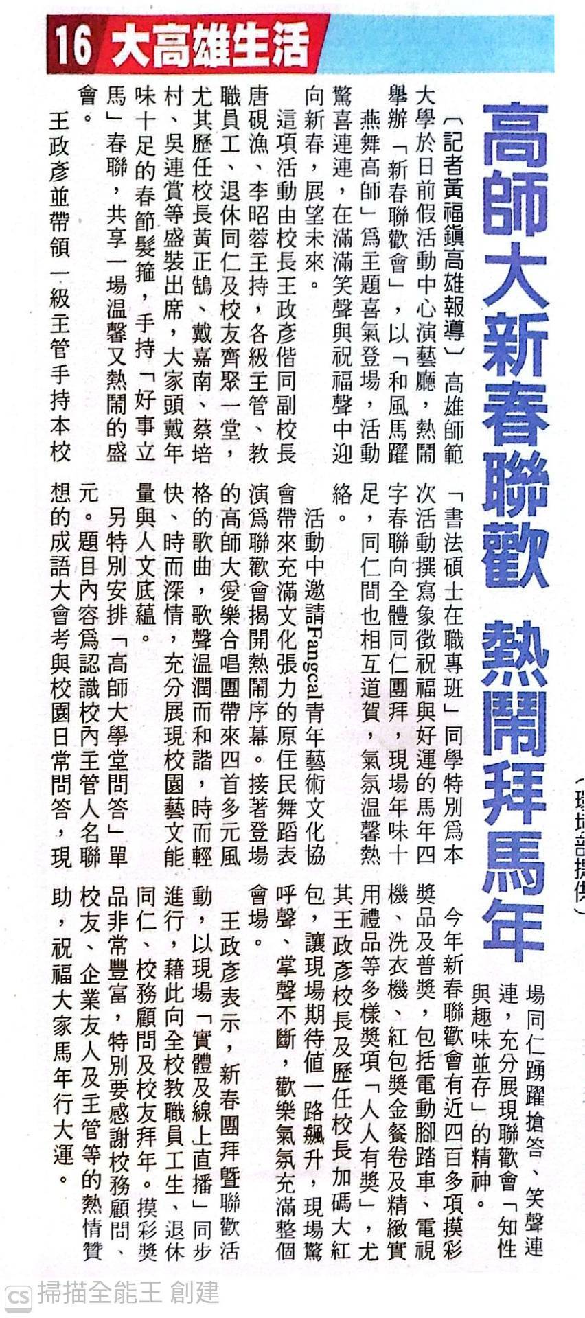 台灣時報:高師大新春聯歡熱鬧拜馬年 【報紙版如附檔】