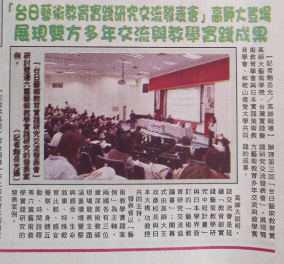 好報新聞:台日藝術教育實踐研究交流發表會 於高師大隆重登場