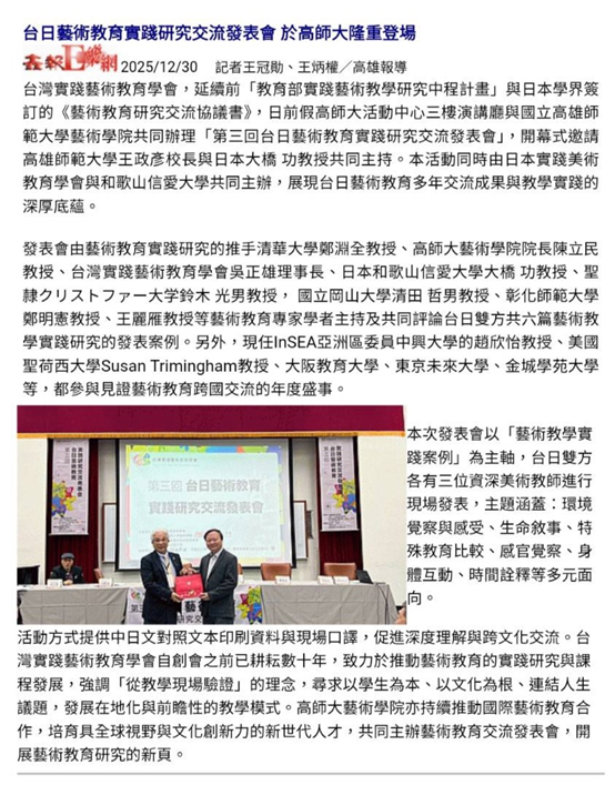 奇摩新聞:台日藝術教育實踐研究交流發表會 高師大隆重登場