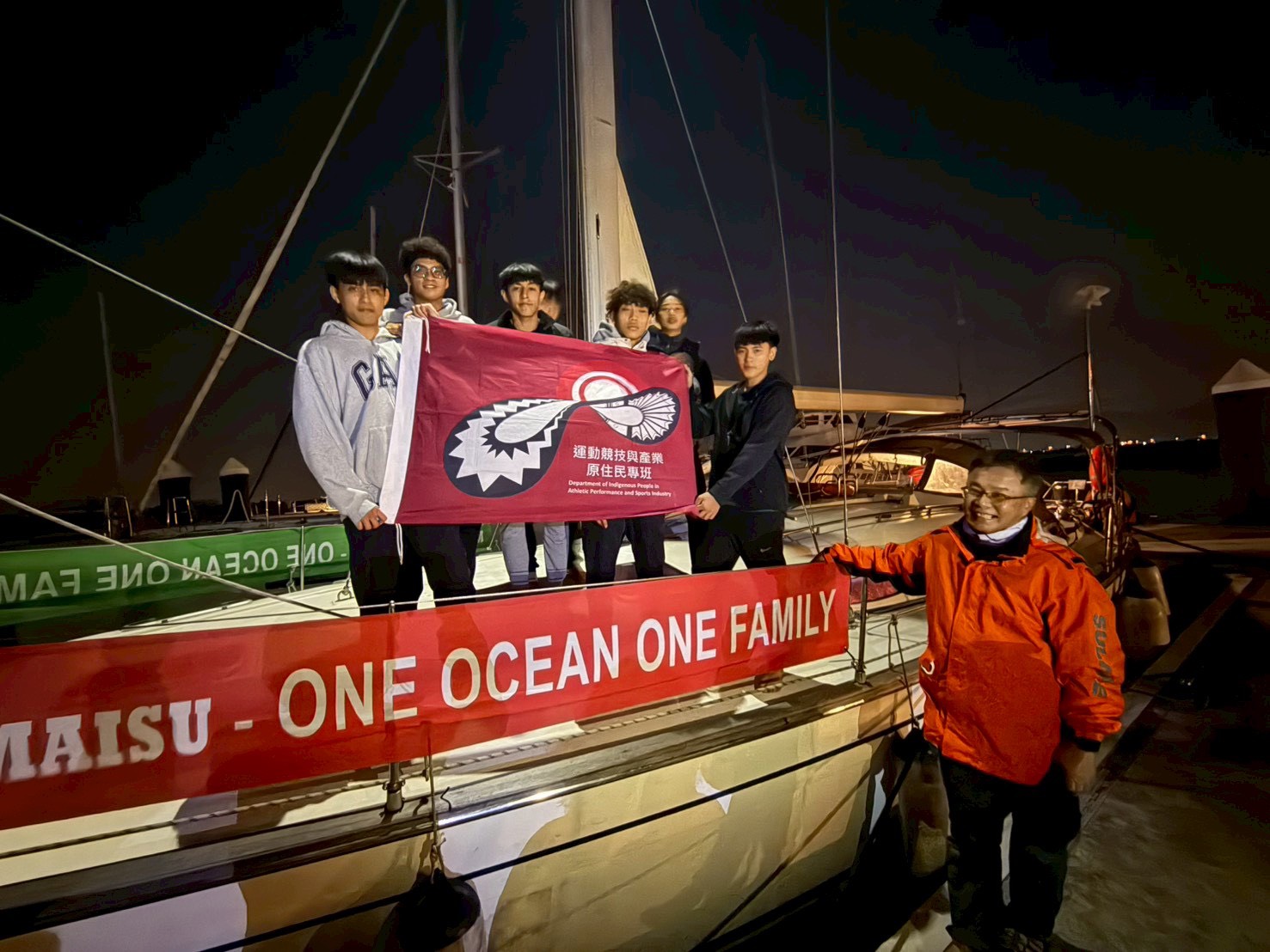 台灣數位新聞:高師大運產原民專班出海迎親 師生迎接帛琉「無私分享號」航入愛河